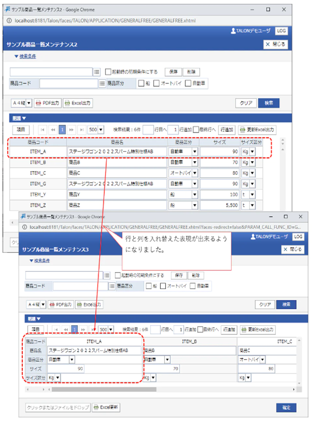 ・明細情報の行列を入れ替えて表示出来るようになりました。